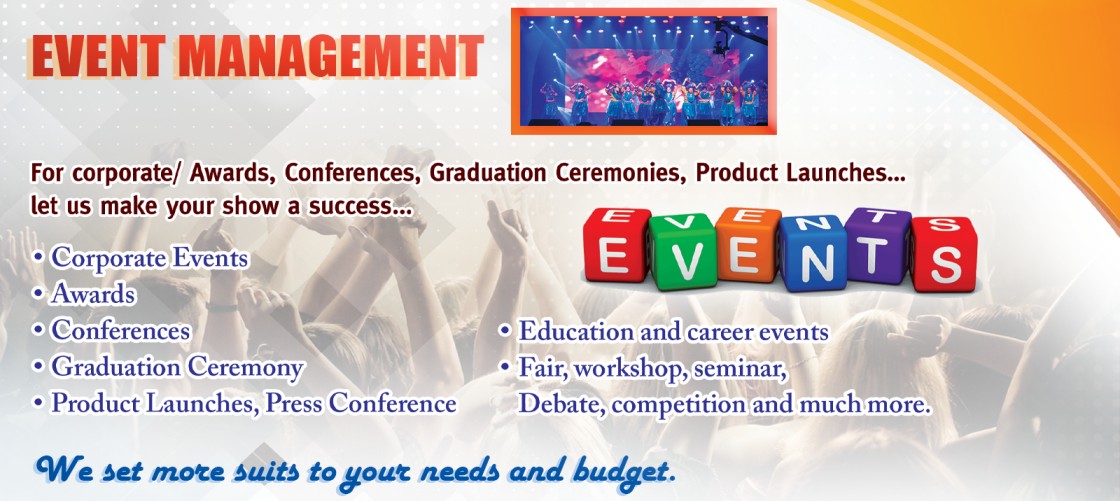 We are always developing innovative ideas and are a one – stop – shop for a full range of Media services, including Sales Promotions, Event Management, Photograhy and Videography , Exhibition and Display Stand Design and Fabrication, Merchandising and Display Services as well as Model and Casting Services and Corporate Gifts and Premiums.